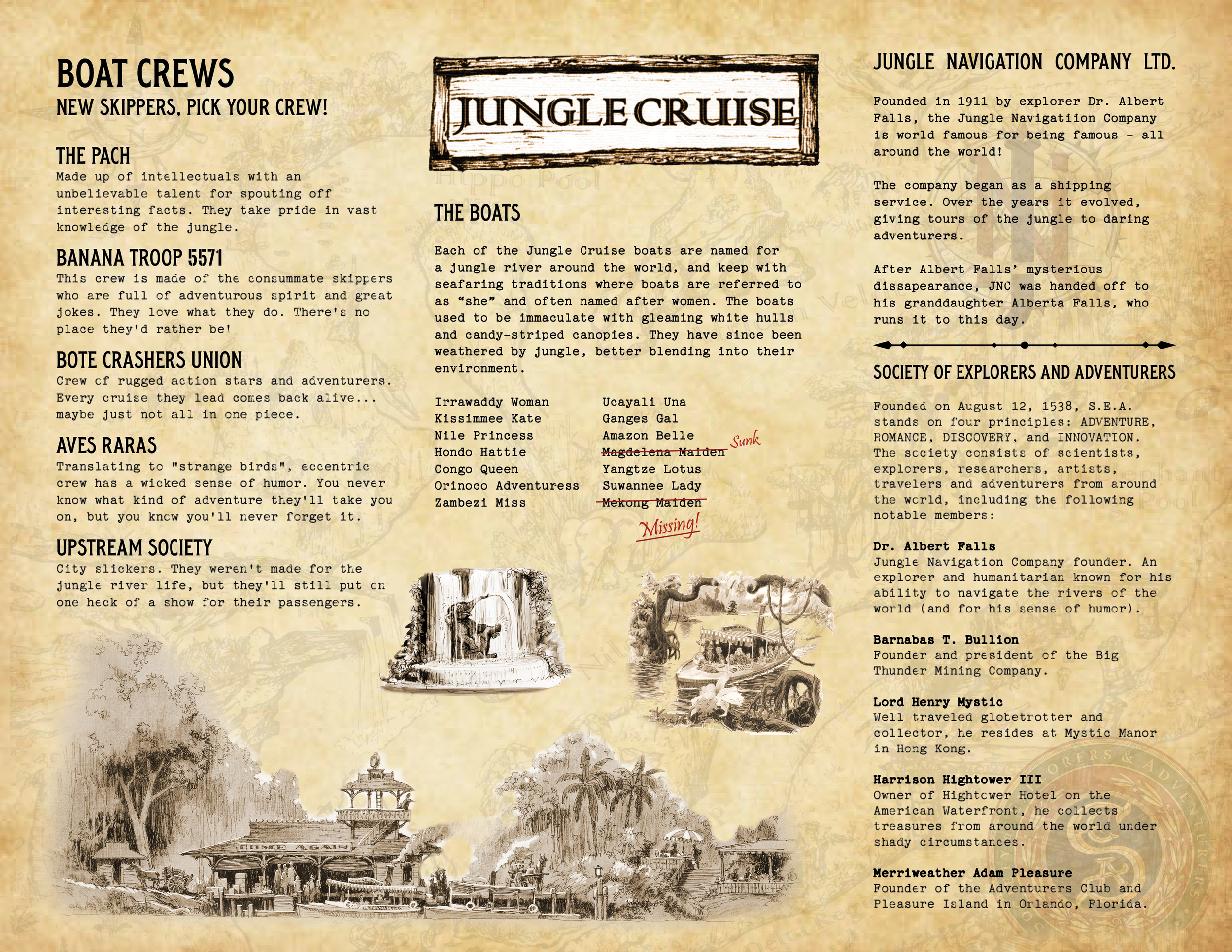 Welcome, new skippers! So sorry to hear about your recent plane crash in the jungle, looks like you’re stuck here. Its not all bad though! We’re a little short staffed and could really use your help. So join us as we get you acquainted with your new job as a skipper at the Jungle Cruise